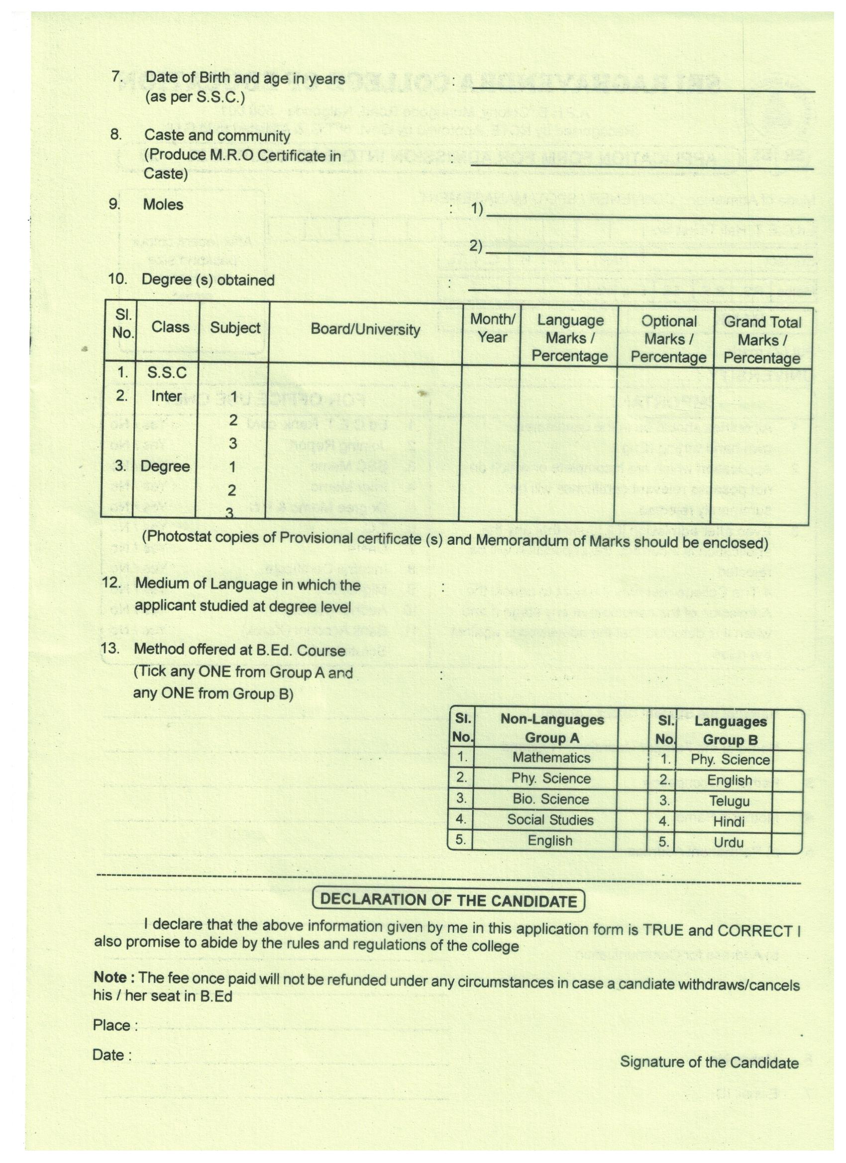Admission Form