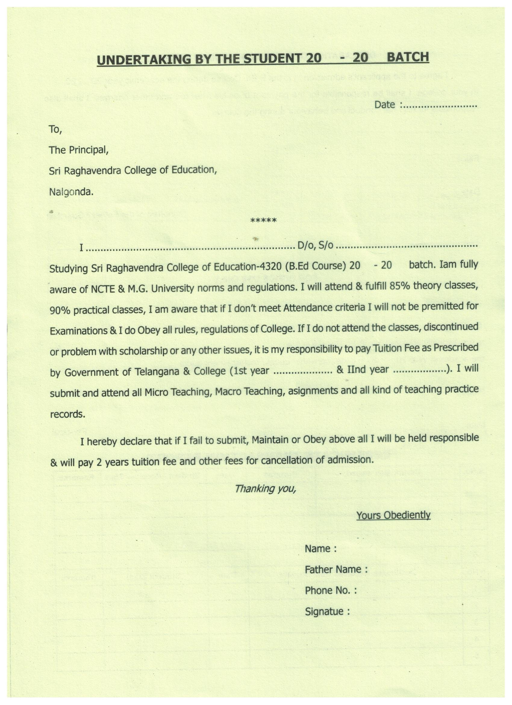 Staff Undertaking